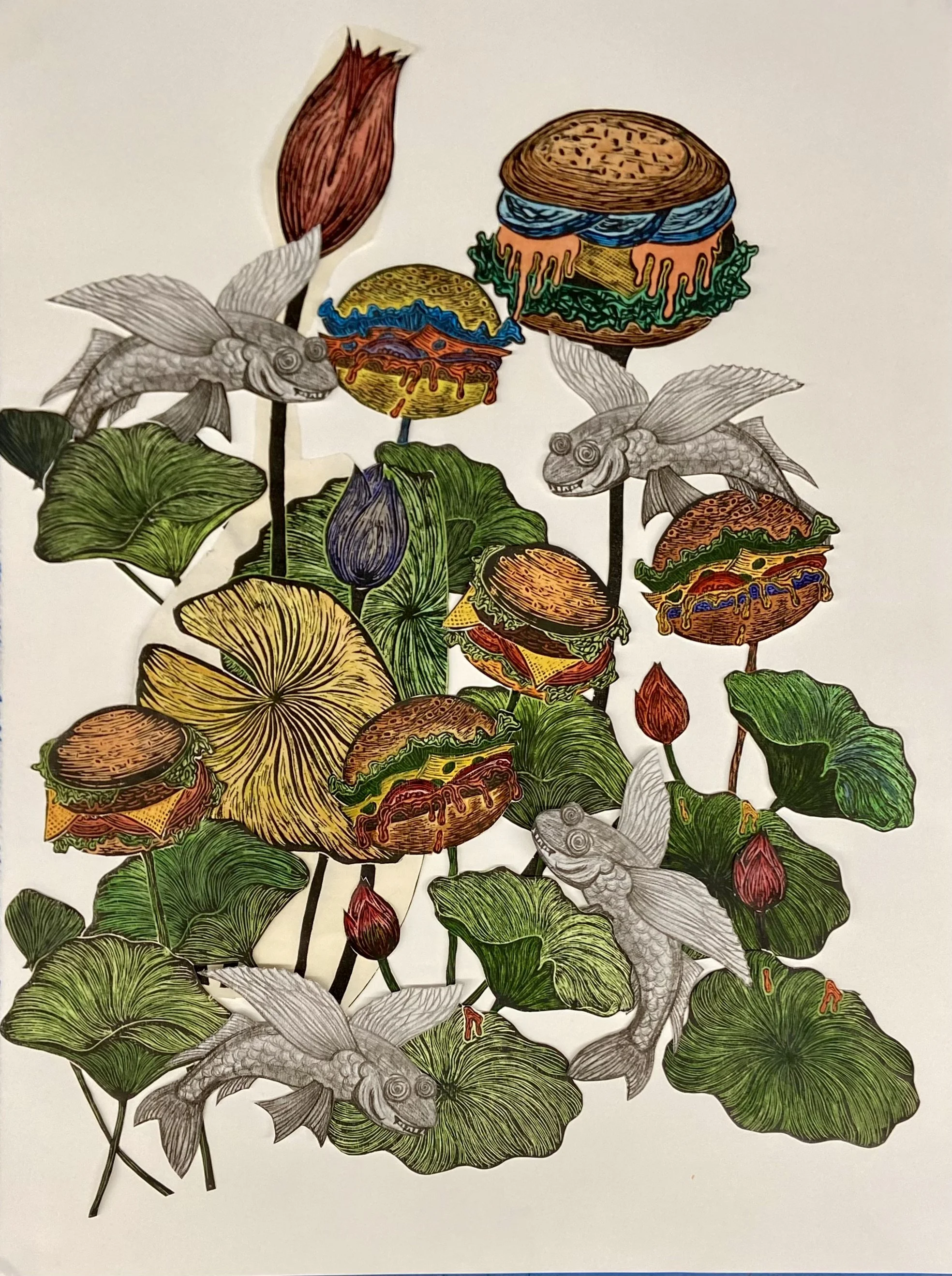 Like all printmaking courses, drawing is extremely important. In this course, it is also important for students to learn the pre-press work of creating, manipulating, and editing imagery on the computer through Adobe Photoshop and Illustrator. For most students, this is the first time they have combined digitally generated and hand-drawn imagery in their work, and many students have never used the Adobe creative suite.